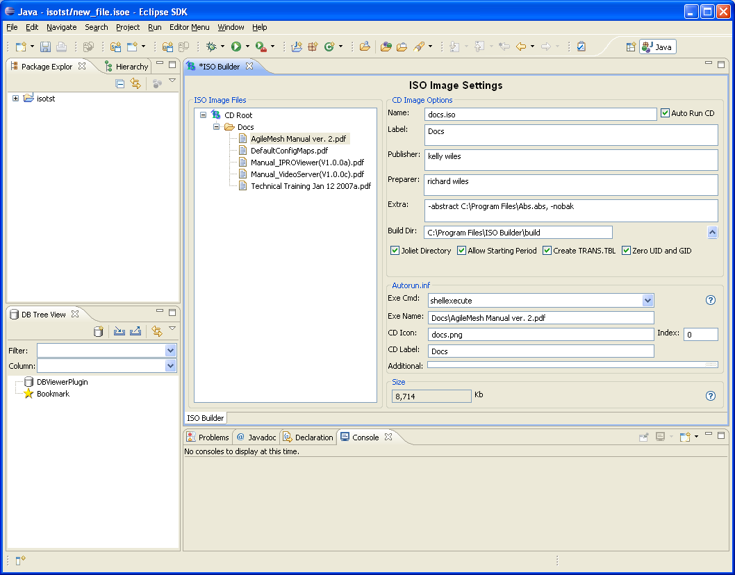 The powerful editor plugin to Eclipse IDE allows the developer to define all parameters needed to build ISO image file.